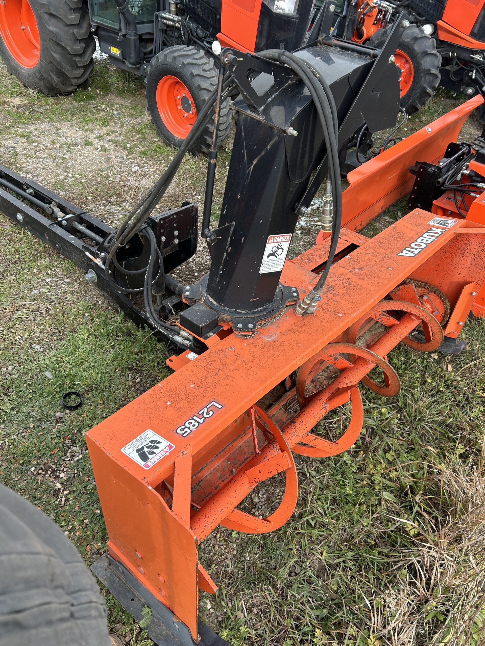 Condition: Very clean, low hour 2004 Kubota tractor; four-wheel drive, hydrostatic transmission, cab with heat and A/C, front loader, and front snowblower.