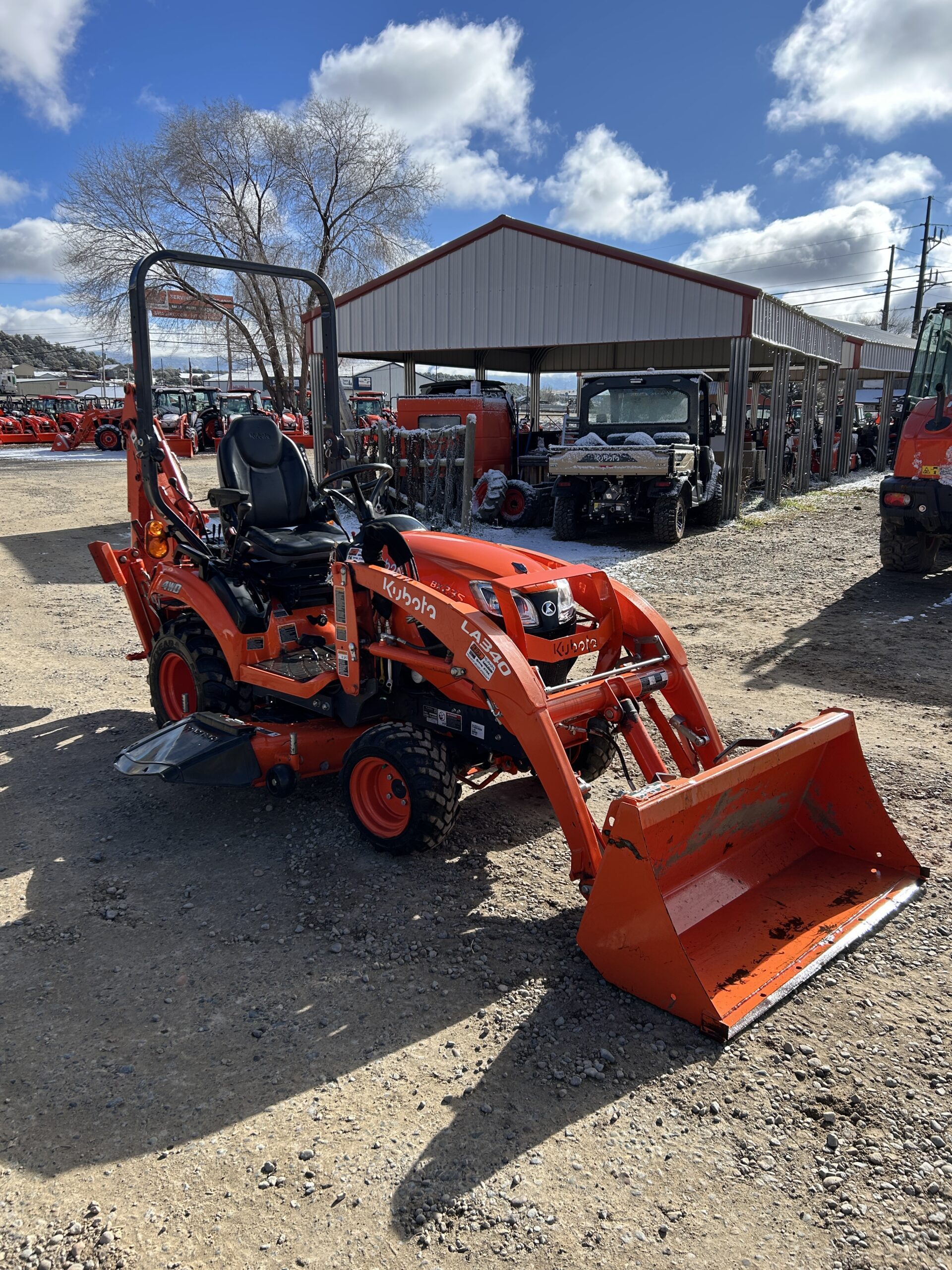 - Quick-Attach LA340 loader with 48″ bucket