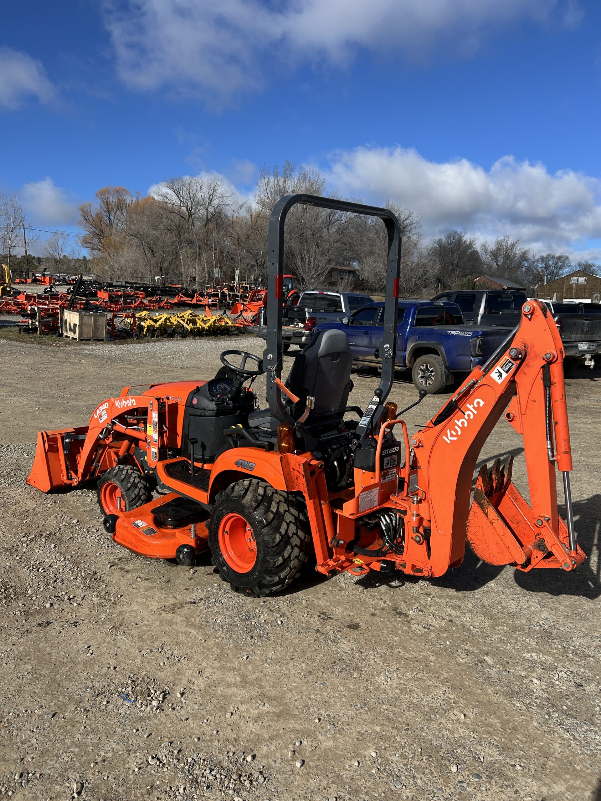 Perfect for property owners and residential landscapers, this clean, low-hour Kubota BX23SLSB-R14-1 delivers the flexibility to handle mowing, digging, and hauling jobs all year. Loader, backhoe, and 60” mid-mount mower deck expand its capabilities for one-machine efficiency.